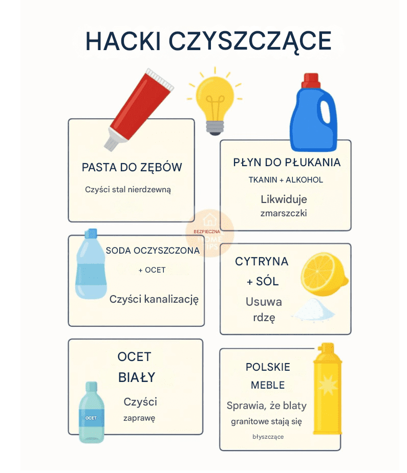 Utrzymanie domu w czystości nie musi być ani skomplikowane, ani ryzykowne dla zdrowia. Dzięki kilku prostym, bezpiecznym i jednocześnie niezwykle skutecznym sposobom sprzątania możesz zadbać o porządek bez użycia agresywnych detergentów. Wiele naturalnych lub łagodnych produktów, które już posiadasz w domu, potrafi zdziałać cuda podczas czyszczenia trudnych miejsc. W tym artykule znajdziesz 11 praktycznych, sprawdzonych metod, które pomogą Ci utrzymać świeży, pachnący i higieniczny dom – w sposób przyjazny dla środowiska i Twojego zdrowia.