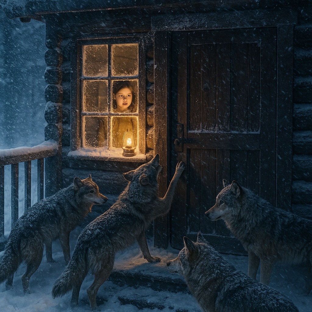 Dziewiętnaście pozostałych wilków pozostało na zewnątrz, w burzy, skulone w śniegu. Wpatrywały się w drzwi, z nastawionymi uszami, błyszczącymi oczami, w gotowości – ale żaden z nich nie wszedł na podłogę chaty.