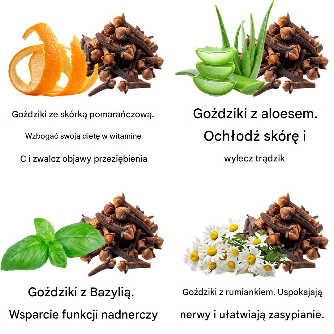 Działanie: Imbir uspokaja żołądek, goździki zmniejszają gazy i wzdęcia.