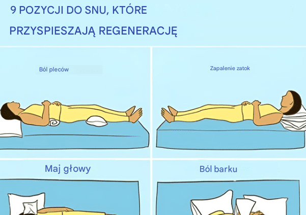 Dobra wiadomość jest taka, że niewielkie zmiany – czasem tak proste jak odpowiednie ułożenie ręcznika lub zmiana strony, na której śpimy – mogą znacząco poprawić komfort nocnego odpoczynku. Poniżej znajdziesz dziewięć pozycji snu i prostych wariantów ułożenia ciała, które mogą wspierać regenerację i pomóc lepiej dopasować sen do potrzeb Twojego organizmu.