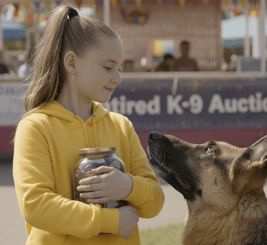 Promienie słońca sączyły się przez wysokie okna, kreśląc na podłodze długie, złote smugi. W ich świetle widać było rzędy składanych krzeseł, ustawionych zbyt ciasno, jakby same nie były pewne, czy powinny tu stać. Za drzwiami metalowej klatki siedział wyprostowany Max – emerytowany pies policyjny. Jego postura zdradzała dawne wyszkolenie: proste plecy, spokojny oddech, czujne oczy. Wyglądał, jakby wciąż czekał na rozkaz, który nigdy już nie nadejdzie.