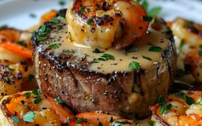 Polędwica wołowa z krewetkami w kremowym sosie homarowym – luksus na talerzu