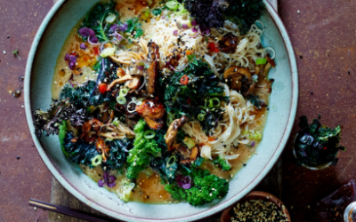 Ramen z jarmużem i grillowanymi pieczarkami – aromatyczna miska umami