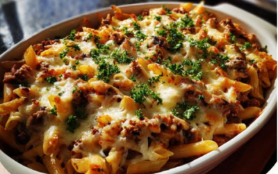 Zapiekanka makaronowa z mięsem mielonym i pieczarkami – sycąca i aromatyczna