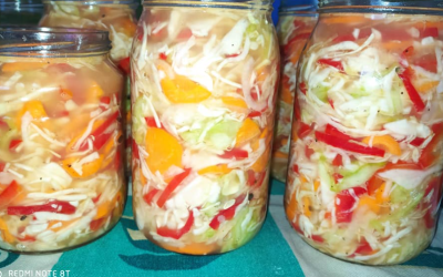Witam . Pyszna sałatka na zimę z 1 kapusty,5 ogórków (można dać cukinie), 5papryk,5cebuli, czosnku 1,5 główki , 6marchewek. Wszystko…