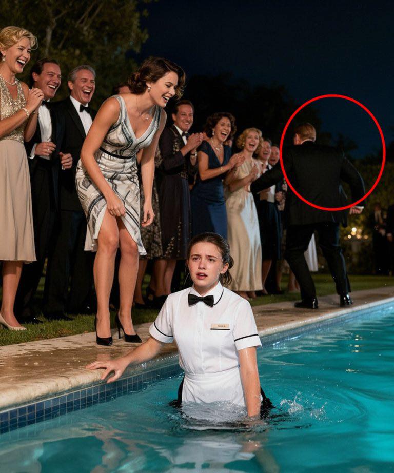 Zanim Emily zdążyła zareagować, Madison szturchnęła ją w ramię. Taca z szampanem poleciała w powietrze, kieliszki roztrzaskały się o pokład basenu, a Emily z pluskiem wpadła tyłem do wody.