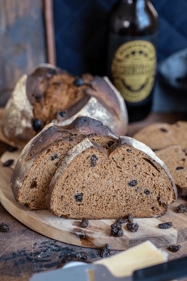 Rustykalny i niesamowicie dobry brzeczkowy chleb o dużym smaku. Z rodzynkami czy bez, to zwykle gorący temat, a jeśli chcesz piec bez nich, po prostu je wyklucz. Mieszankę brzeczki można znaleźć na półce z przyprawami w sklepie.
