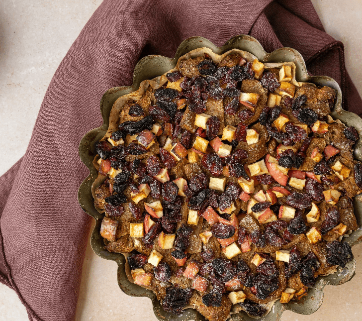 Moja mama przygotowywała go bardzo często, zawsze wtedy, gdy w kuchni zostawał chleb, który nie nadawał się już do jedzenia na świeżo. W tej wersji wykorzystujemy resztki świątecznego bochenka lub strucla, ale z powodzeniem można użyć także zwykłego chleba — białego, razowego czy mieszanego. Liczy się idea niemarnowania jedzenia i wydobycia maksimum smaku z prostych składników.