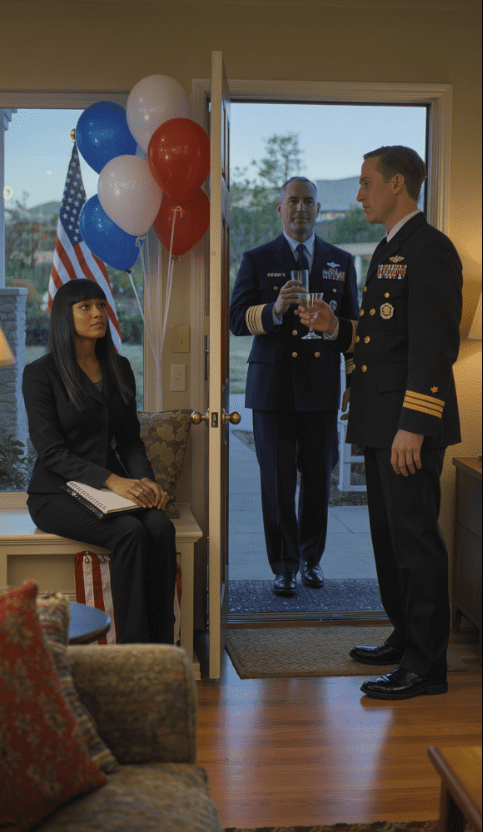 Zapach uderzył najpierw – grilla, burbona, czegoś słodkiego pieczonego w piekarniku. Salon był morzem czerwonych, białych i niebieskich balonów, a na ścianach wisiały banery. Nad kominkiem wisiał ręcznie wykonany napis: „Witamy w domu, sierżancie”.