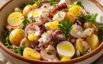 Ta ciepła sałatka z ziemniaków, ośmiornicy, jajek i rzodkiewki to danie inspirowane kuchnią śródziemnomorską – prostą, aromatyczną i opartą na…