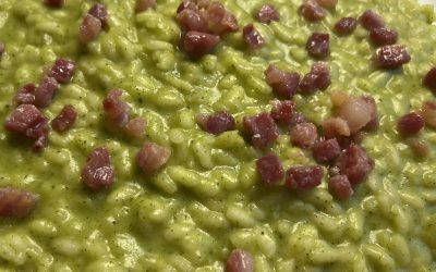 Kremowe risotto z cukinii z pancettą i migdałami