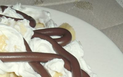 Banana Excelent Składniki: 3 banany bita śmietana polewa czekoladowa lub nutella Krok po kroku: