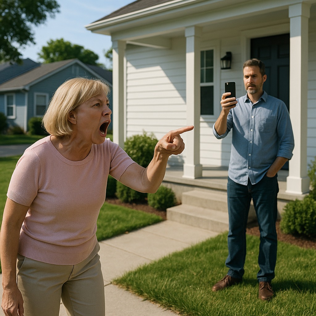 „Dzień dobry” – powiedziała głosem ostrym jak szkło. „Czy jesteś nowym właścicielem domu?”
