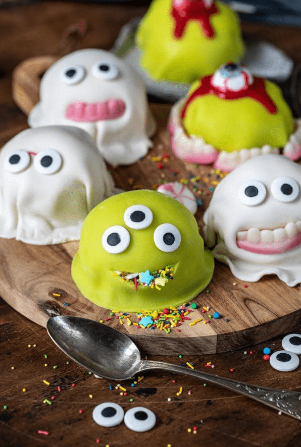 Nałóż sporą porcję kremu na wierzch ciastek i rozsmaruj go po całym cieście. Na koniec dodaj odrobinę więcej, aby nadać mu trochę wysokości. Ciasteczka będą wyglądać bardzo efektownie i na pewno zachwycą gości. Pamiętaj, że dekorowanie to także świetna zabawa – im bardziej kreatywnie podejdziesz do ozdób, tym bardziej straszne staną się te ciasteczka!
