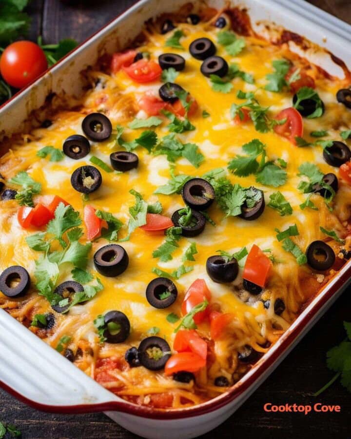Ciasto enchilada to wyjątkowo sycące i aromatyczne danie, które łączy w sobie wszystkie najlepsze cechy klasycznych enchiladas w formie wygodnej, warstwowej zapiekanki. To idealna propozycja dla miłośników kuchni meksykańskiej i Tex-Mex, którzy szukają czegoś rozgrzewającego, treściwego i pełnego intensywnych smaków. Soczyste mięso, kremowe sery, aromatyczny sos enchilada oraz delikatnie podsmażone tortille tworzą harmonijną całość, której trudno się oprzeć.