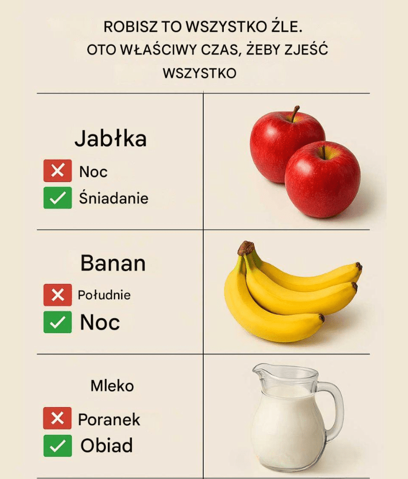 🍽️ Produkty i najlepszy czas ich spożycia: