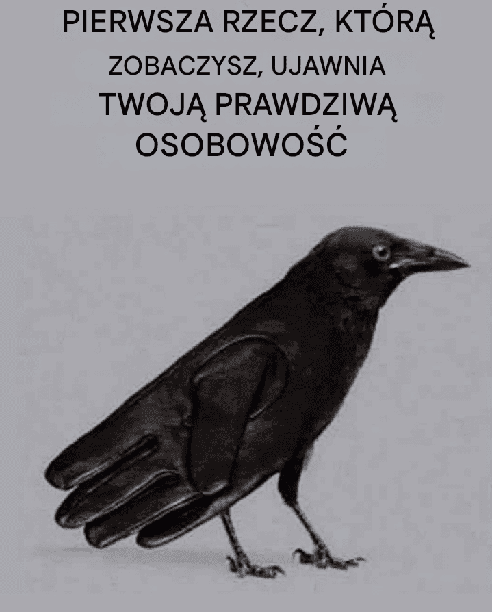 W przypadku tego obrazu część osób natychmiast zauważa sylwetkę wrony, inni natomiast dostrzegają czarną, skórzaną rękawiczkę. Obie interpretacje są poprawne, jednak to, która pojawia się jako pierwsza, bywa odzwierciedleniem dominującego stylu poznawczego.