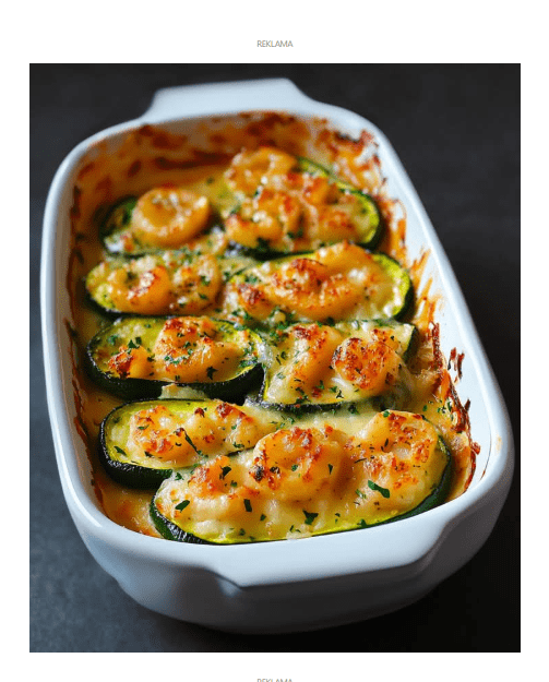 Zapiekanka z cukinii z krewetkami i czosnkiem: Aromatyczne i rozgrzewające danie.