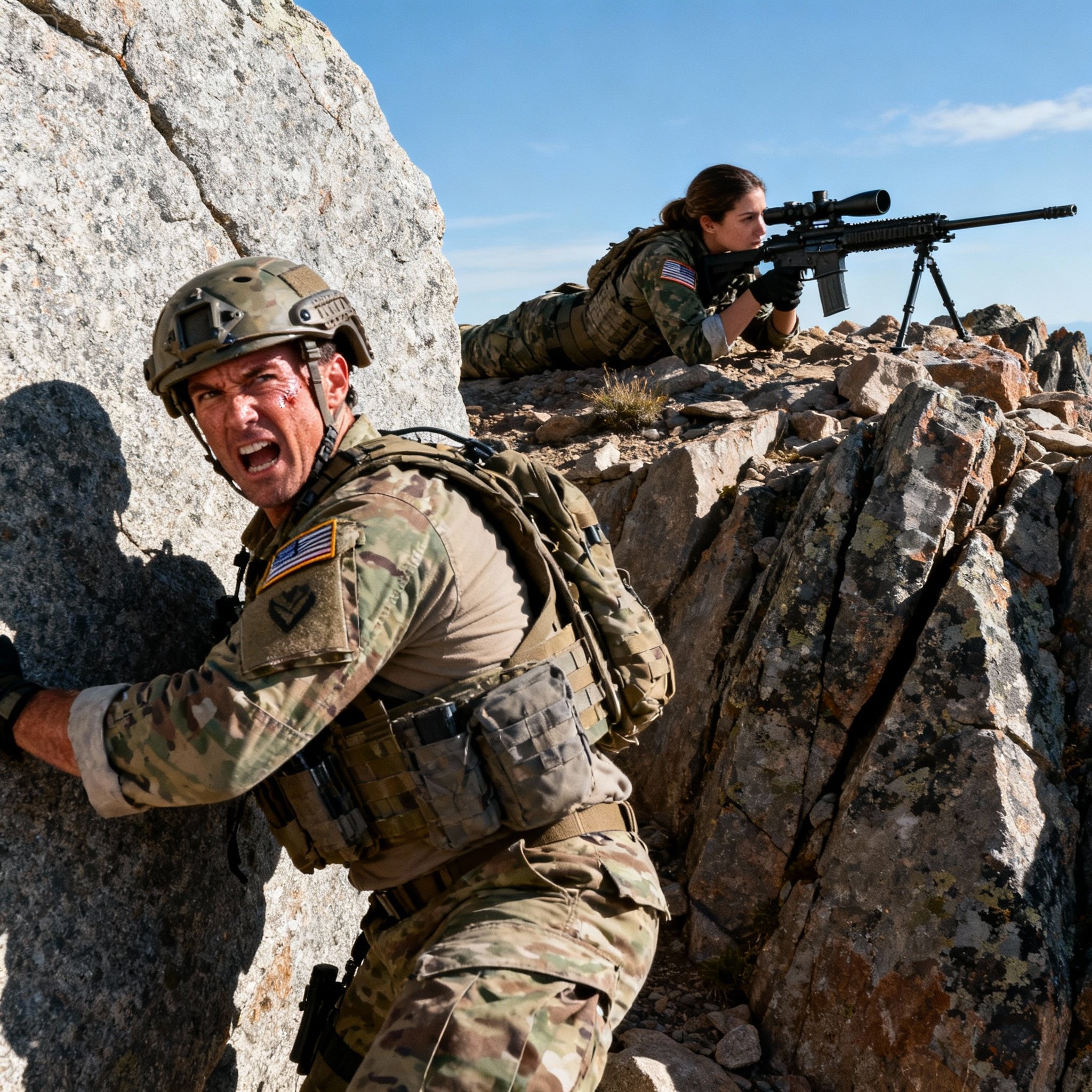 Strzały rozległy się najpierw jako odległy trzask, a potem jak przetaczający się grzmot, którego dolina nie mogła pomieścić. Roztrzaskały granitowe ściany Gór Skalistych w Kolorado – gwałtowny, perkusyjny dźwięk, który wibrował głęboko w kościach. Komandor porucznik John Maddox poczuł wstrząs w zębach, przyciskając mocno ciało do poszarpanej skały. Nad nim ściana klifu zadrżała, zrzucając cienką zasłonę pyłu i kamieni, które uderzały o jego hełm. Powietrze, rozrzedzone i zimne na wysokości 9000 stóp, miało smak kordytu i starożytnej, wzburzonej ziemi.