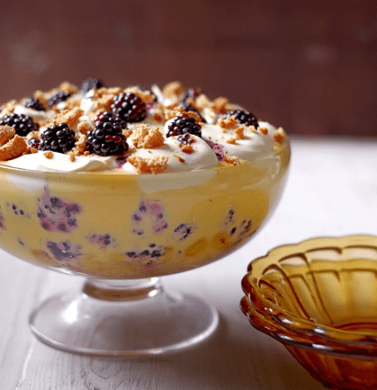 Deser jeżynowy Dolly to elegancka, warstwowa propozycja idealna na jesienne spotkania z rodziną i przyjaciółmi. Partnerka Pete’a, Dolly Sweet, słynie z mistrzowskich wypieków i deserów, a ten przepis jest jednym z jej popisowych numerów. Każdej jesieni przygotowuje go z jeżyn zebranych własnoręcznie, dzięki czemu deser zachwyca świeżością, kolorem i smakiem.