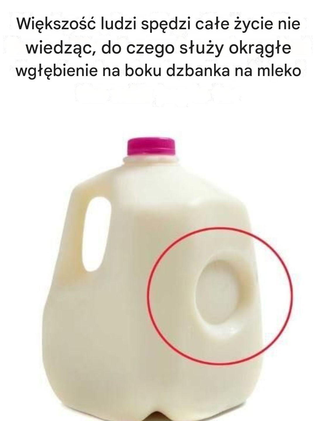 To małe, tajemnicze wgłębienie na galonowym lub półgalonowym dzbanku na mleko?