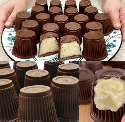 Ustaw przygotowane foremki na blasze do pieczenia i wstaw do lodówki na około 15 minut, aż czekolada całkowicie stężeje. Po tym czasie wyjmij je i odstaw na bok.