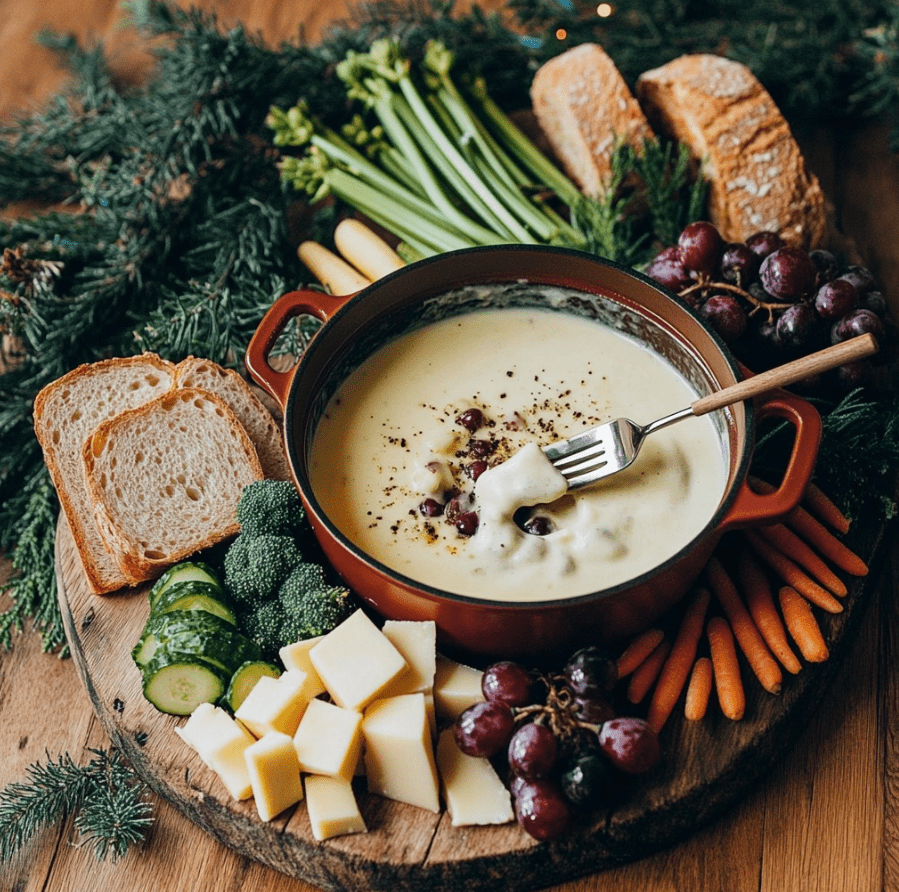 Fondue sabaudzkie to jedno z najbardziej rozpoznawalnych dań kuchni alpejskiej, kojarzone z długimi wieczorami, wspólnym biesiadowaniem i prostą, ale dopracowaną kompozycją smaków. Połączenie kilku dojrzewających serów, białego wina i delikatnych dodatków sprawia, że danie jest jednocześnie sycące i eleganckie. W tej wersji fondue podawane jest nie tylko z wiejskim chlebem, lecz także z chrupiącymi warzywami i winogronami, które wnoszą świeżość i lekkość.