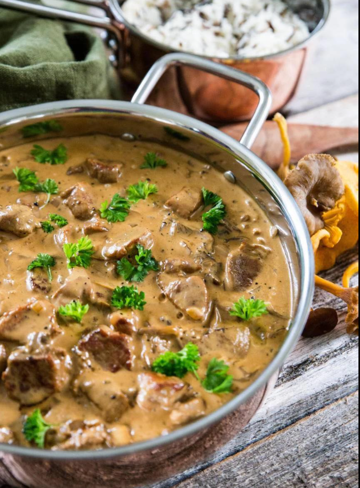 Gulasz z filetu wieprzowego z kurkami