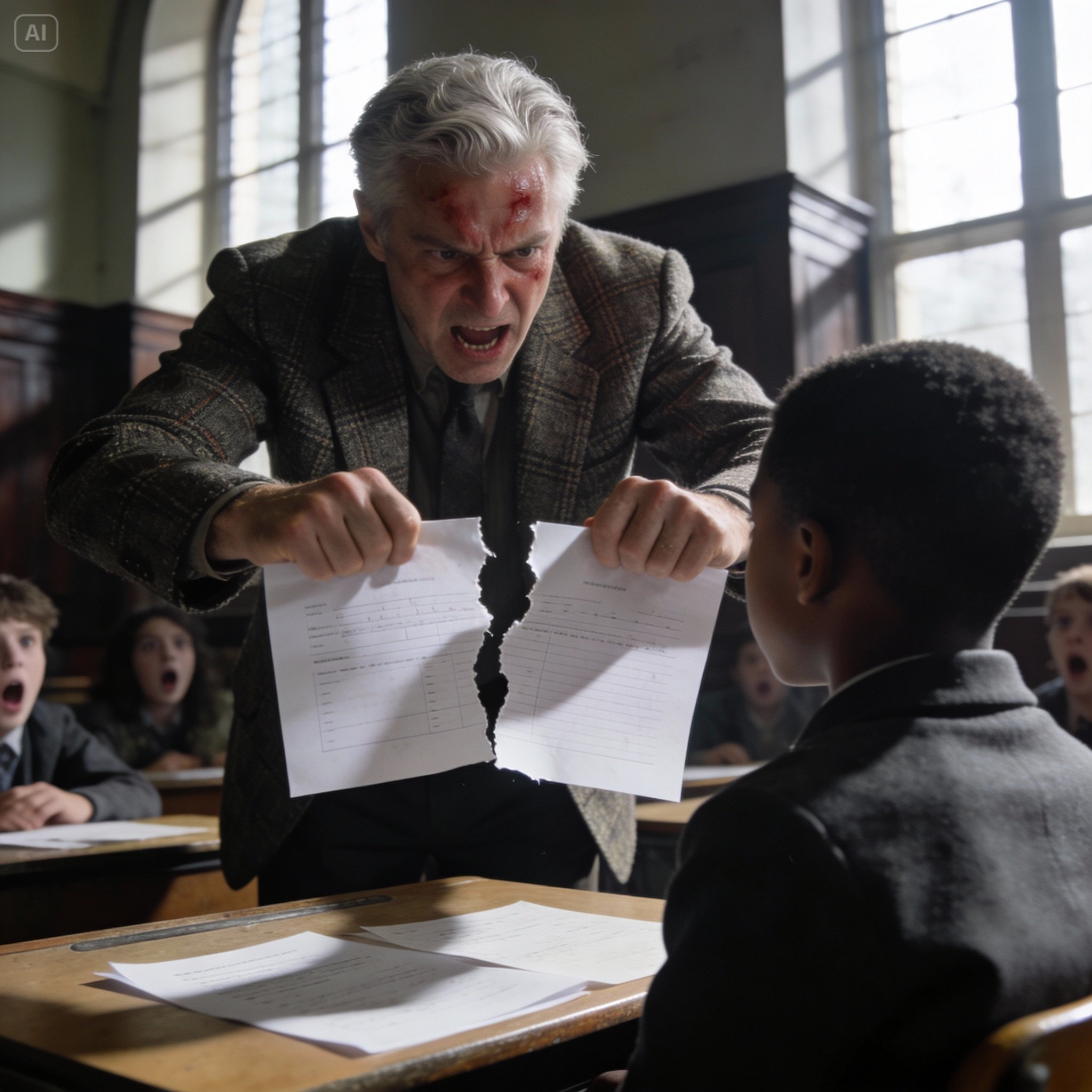 „To niedopuszczalne” – powiedział nagle pan Harrison, a jego głos przeciął ciszę klasy niczym ostrze.