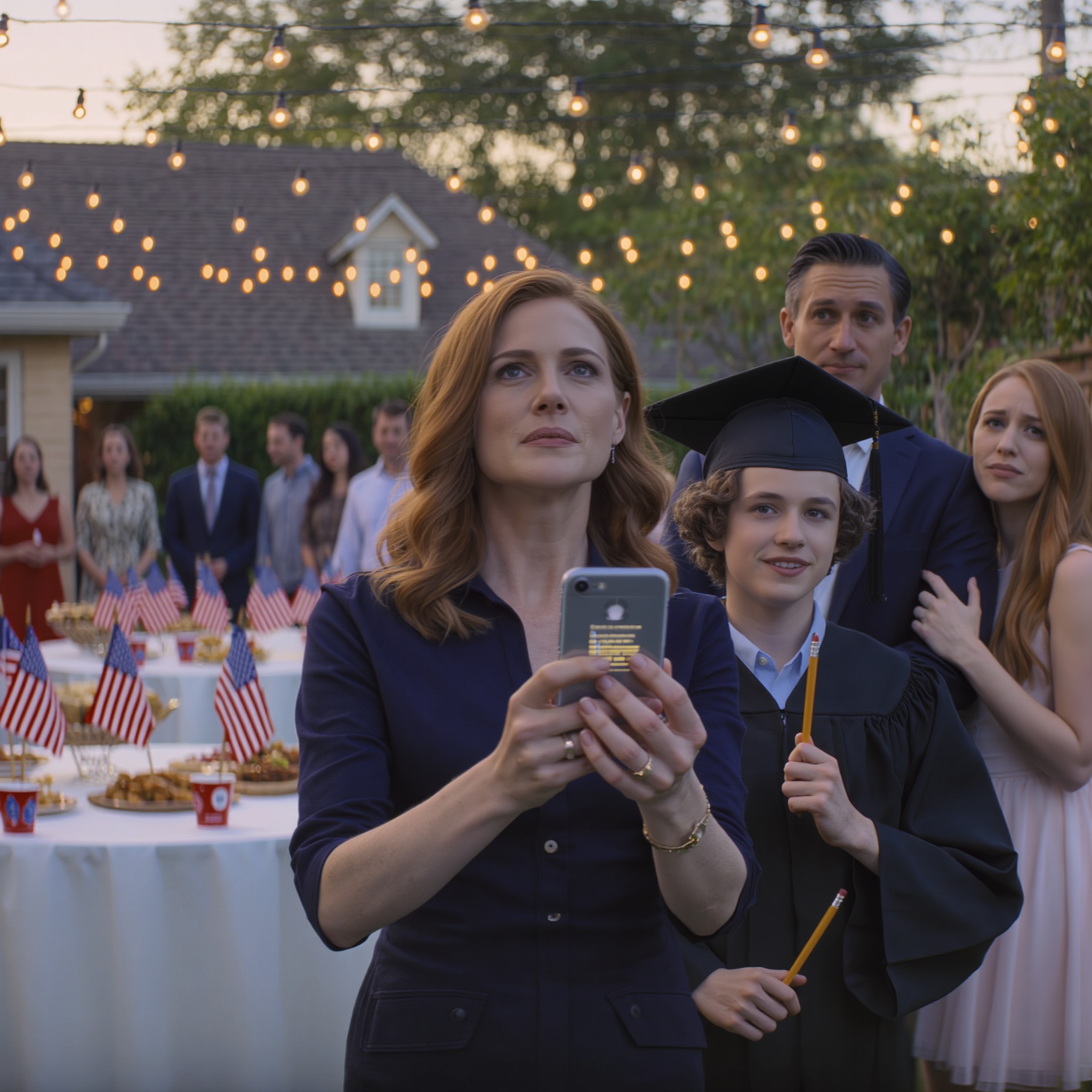 Palce Avy zacisnęły się, a jej oczy rozszerzyły się, zanim zdołała je uspokoić. Mój syn, Ethan, stał przy stole z prezentami w czepku i todze, z uśmiechem, który ćwiczył przed lustrem: napiętym w kącikach, na tyle uprzejmym, by przetrwać.