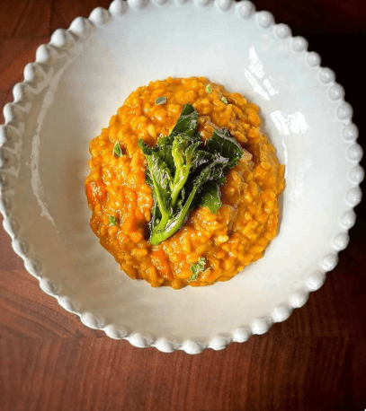 Risotto z jedwabistą dynią to danie, które łączy w sobie kremową konsystencję klasycznego włoskiego risotta z naturalną słodyczą pieczonej dyni. Dzięki długiemu, powolnemu gotowaniu ryżu oraz stopniowemu dodawaniu bulionu potrawa zyskuje aksamitną strukturę, a dynia – szczególnie piżmowa lub żołędziowa – nadaje jej głębię smaku i delikatną, niemal maślaną nutę.
