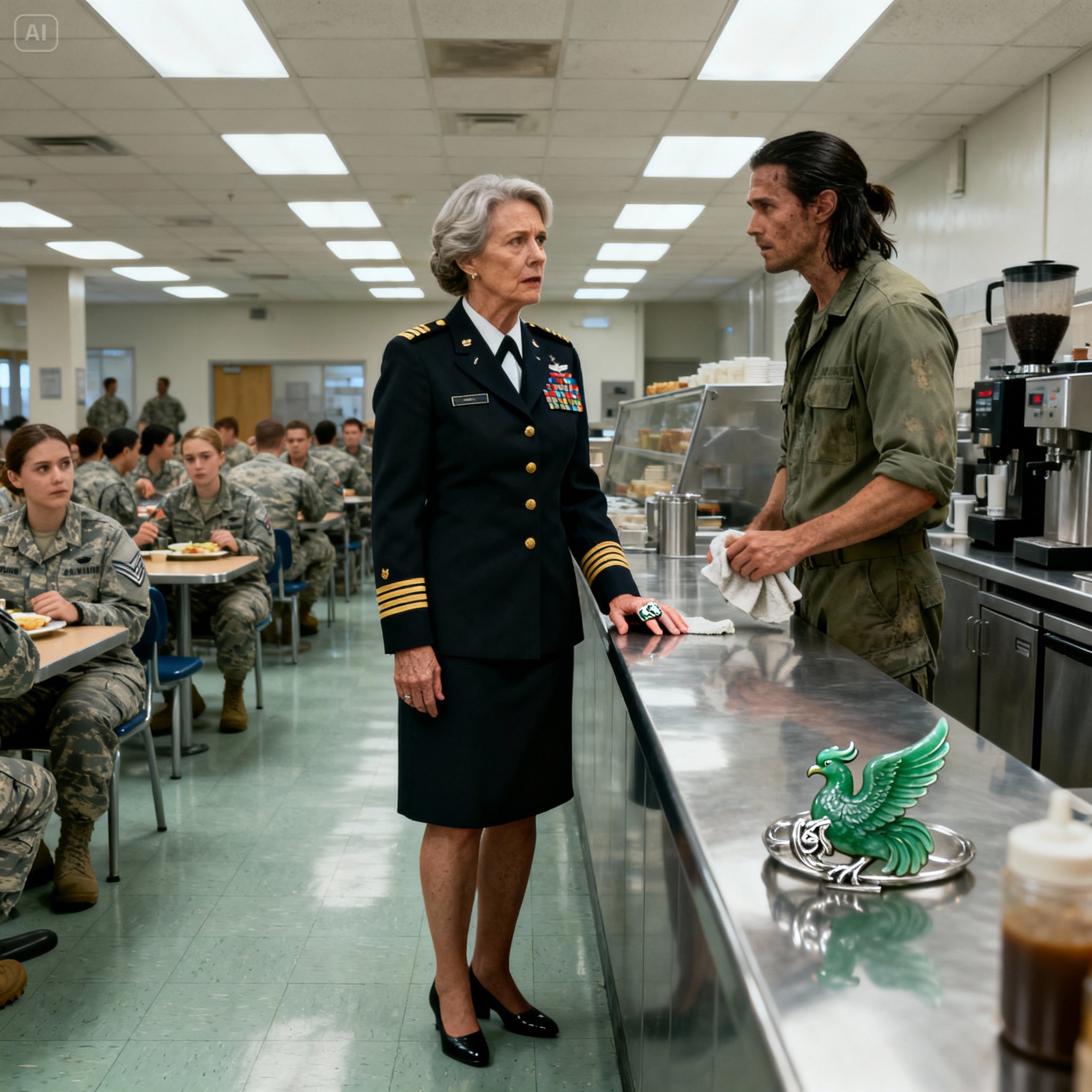 Generał Faith Lawson weszła punktualnie, ale tym razem jej obecność przyciągnęła nie tylko rutynową uwagę. Przyciągnęła szepty. Plotki w bazie wojskowej rozchodzą się szybciej niż dźwięk. Woźny powiedział coś nowemu dowódcy. Nikt nie wiedział dokładnie co, ale wszyscy wyczuwali konsekwencje. Lotnicy przy stolikach nagle uznali swoje buty za fascynujące, unikając kontaktu wzrokowego, bojąc się przekroczenia jakiejś niewidzialnej granicy rangi lub plotki.