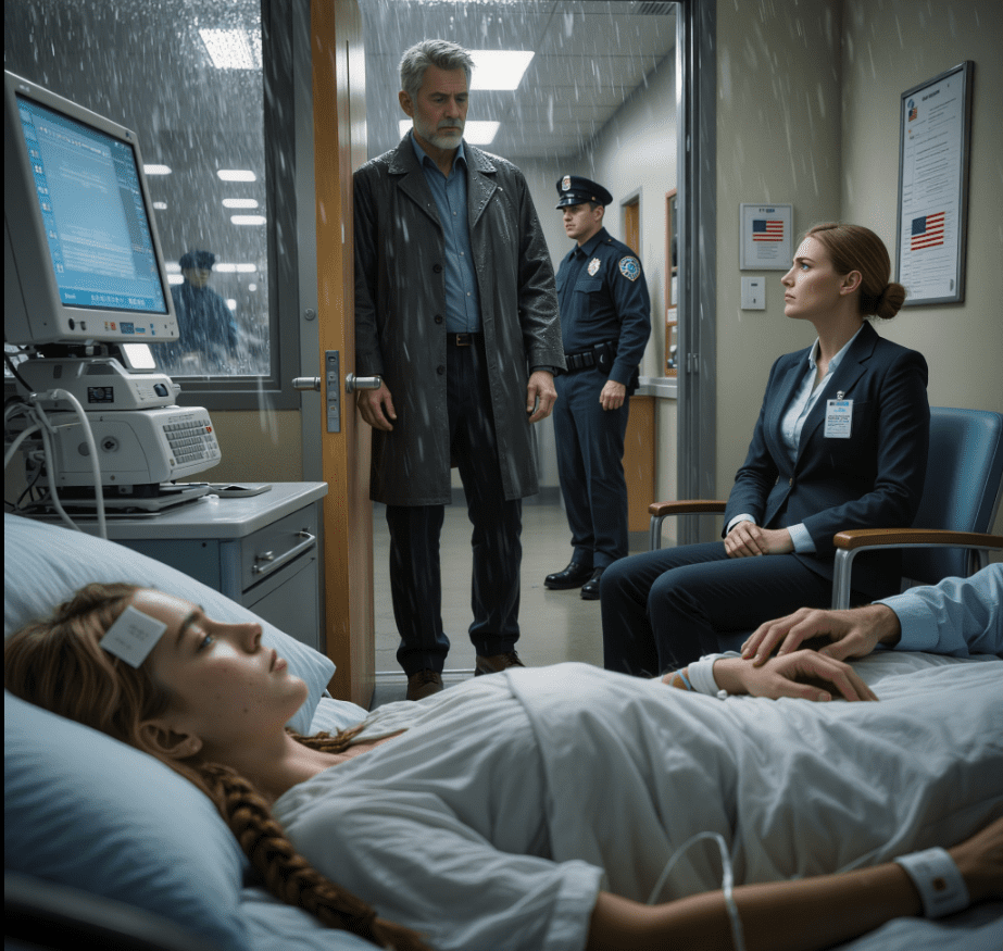 Trzy godziny później policja wezwała ich do szpitala. Kiedy tata wszedł i zobaczył, kto siedzi przy moim łóżku, ręce nie przestawały mu się trząść. „Ty… ty nie możesz tu być…”