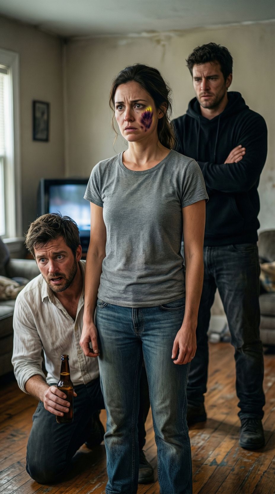 Klęczący Dawid powinien był poczuć się jak zwycięzca, ale tak nie było. Czułem się surrealistycznie, pusto, jakby mój umysł nie dogonił ciała. Jego wzrok błądził między mną a Aaronem, a w jego głosie słychać było żałosną mieszankę strachu i manipulacji.
