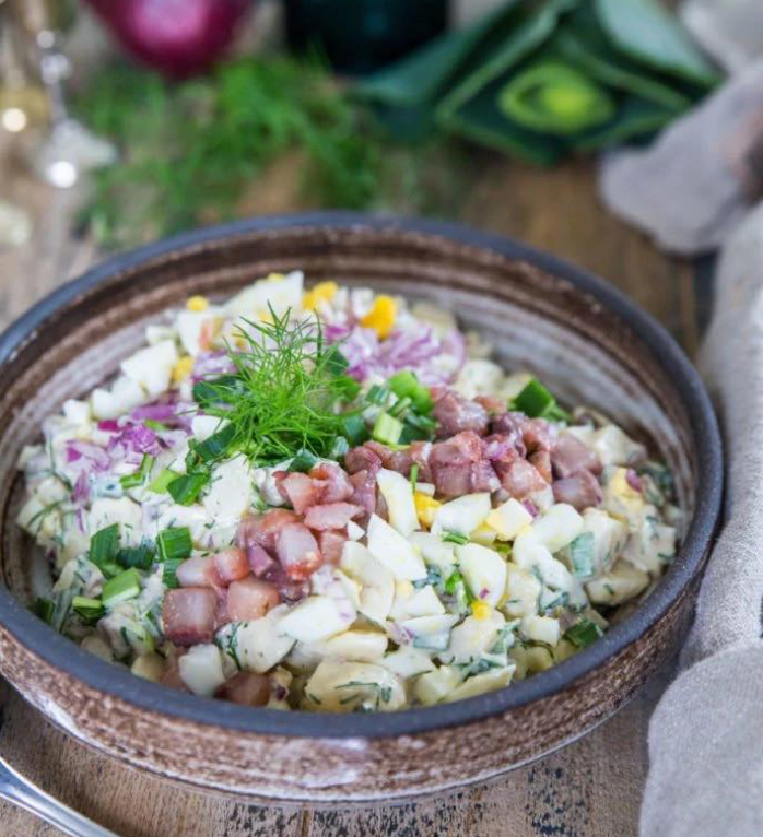 Sałatka nubbe to klasyka, która sprawdzi się na każdym bufecie czy jako dodatek do chrupiącej kanapki. Kremowa mieszanka śledzia, jajek, ziemniaków i cebuli to połączenie, które zachwyca prostotą, ale też pełnią smaku. Choć w tradycyjnej wersji podaje się ją z dodatkiem nubben (wódki), sama sałatka jest wystarczająco smaczna i pełna aromatu. Przygotowanie jej dzień wcześniej pozwala na pełne przegryzienie się smaków, co czyni ją jeszcze bardziej wyrazistą.
