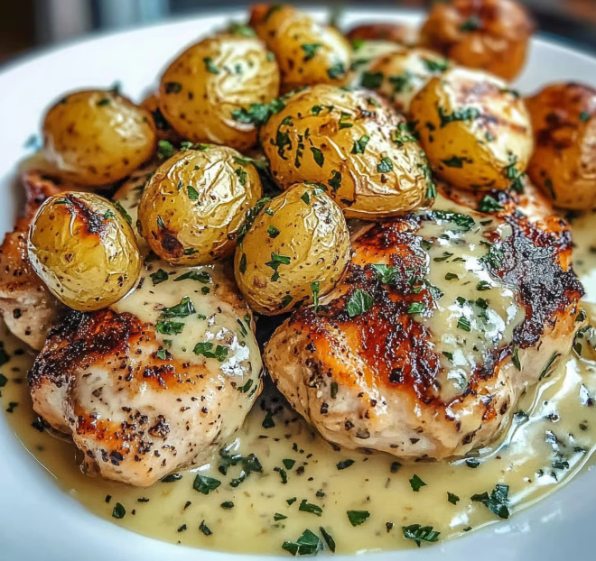 To danie łączy w sobie komfort domowej kuchni z elegancją potrawy restauracyjnej. Jest sycące, pełne smaku, a jednocześnie wystarczająco proste, aby bez stresu przygotować je w zabiegany wieczór w tygodniu. Wszystkie elementy można gotować równolegle: ziemniaki pieką się w piekarniku, podczas gdy na kuchence powstaje kremowy sos i soczysty kurczak. Efektem jest zbilansowany talerz białka, aksamitnego sosu i złocistych ziemniaków, który smakuje zarówno dorosłym, jak i dzieciom.