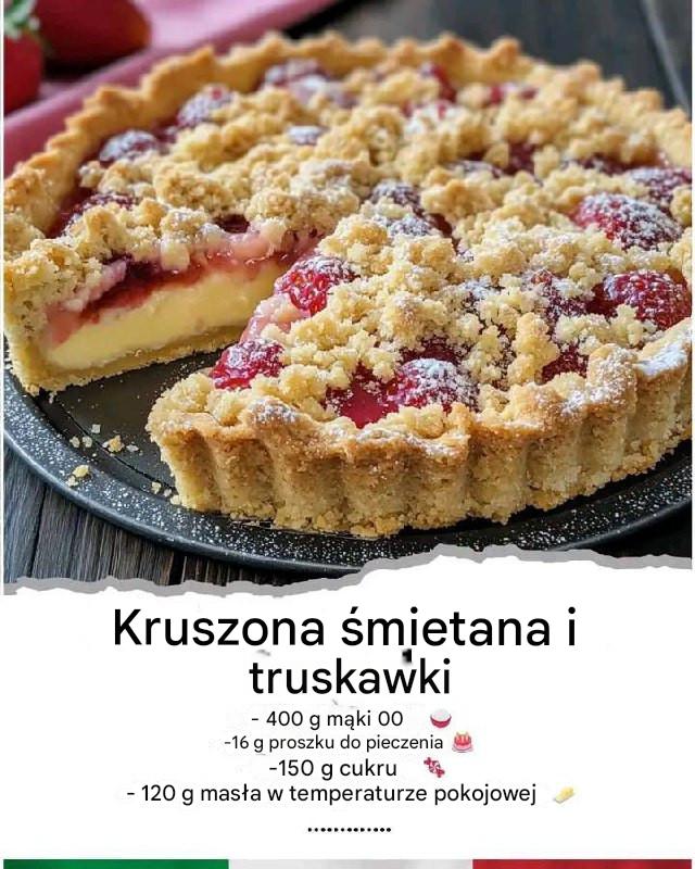 Kruszonka truskawkowo-śmietankowa to wiosenny deser, który łączy w sobie prostotę wykonania, świeżość sezonowych owoców oraz niezwykle przyjemny, domowy smak. Kruchy spód i wierzch z maślanych okruchów doskonale kontrastują z delikatnym, kremowym wnętrzem oraz soczystymi truskawkami. To wypiek, który zachwyca nie tylko smakiem, ale również strukturą – każdy kęs łączy w sobie miękkość, kruchość i owocową lekkość.