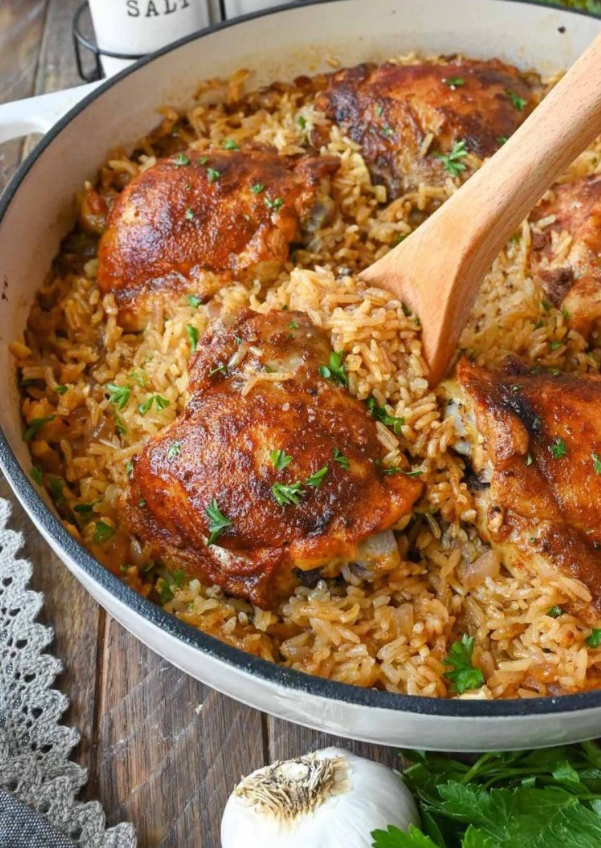 Kurczak z papryką i pieczonym ryżem to aromatyczna, sycąca zapiekanka jednogarnkowa, która idealnie sprawdzi się jako szybki obiad lub kolacja dla całej rodziny. Delikatne, soczyste udka kurczaka łączą się tu z puszystym ryżem nasiąkniętym bulionem i intensywnym smakiem wędzonej papryki. Całość wymaga zaledwie kilku podstawowych składników i może być gotowa w mniej niż 40 minut, co czyni ten przepis wyjątkowo praktycznym.