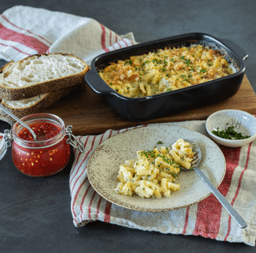 W tej wersji dodaliśmy garść szczypiorku – resztkę po bułeczkach z cheddarem i szczypiorkiem – oraz chrupiącą bułkę tartą z focacci bez wyrabiania. To właśnie pokazuje piękno tego dania: makaron z serem doskonale znosi improwizację, zachęca do wykorzystywania resztek i pozwala dostosować się do tego, co akurat mamy w kuchni. Każdy drobny dodatek może nadać mu nowego charakteru, nie odbierając przy tym jego klasycznego uroku.