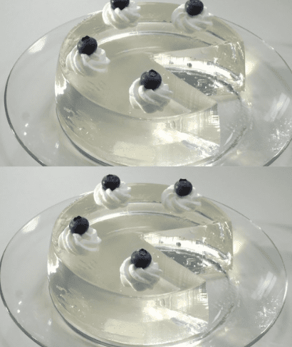 Dzięki wykorzystaniu Zero Sprite deser pozostaje wyjątkowo świeży w smaku i ma bardzo niską kaloryczność. Galaretka jest delikatna, sprężysta i pięknie odbija światło, a dodatek bitej śmietany i jagód nadaje całości klasy oraz subtelnej słodyczy.