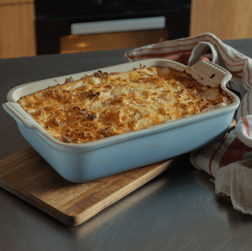 Całość dopełnia sos na bazie masła truflowego, który nadaje daniu charakterystyczny, ziemisty aromat i głębię smaku. Połączenie dojrzałego cheddara o wyrazistej ostrości z intensywnie słonym parmezanem tworzy bogaty profil umami, który idealnie kontrastuje z łagodnością kalafiora. Po upieczeniu zapiekanka bulgocze, wierzch staje się złocisty i lekko chrupiący, a środek pozostaje kremowy i rozpływający się w ustach.
