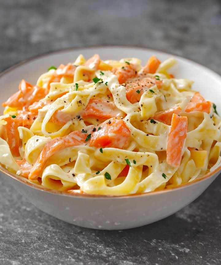 Jeśli używasz wędzonego łososia: Pokrój go w cienkie paski, aby łatwo wtopił się w sos.