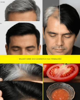 Fałsz. Kolor włosów jest determinowany przez melaninę – naturalny pigment wytwarzany w mieszkach włosowych. Gdy jej produkcja spada lub ustaje, włosy tracą kolor i siwieją. Żaden naturalny składnik, w tym sok pomidorowy, nie jest w stanie w kilka minut przywrócić melaniny wewnątrz struktury włosa. Pomidory nie zawierają pigmentów, które mogłyby trwale zabarwić włókna włosów, a ich działanie ogranicza się do pielęgnacji powierzchniowej.