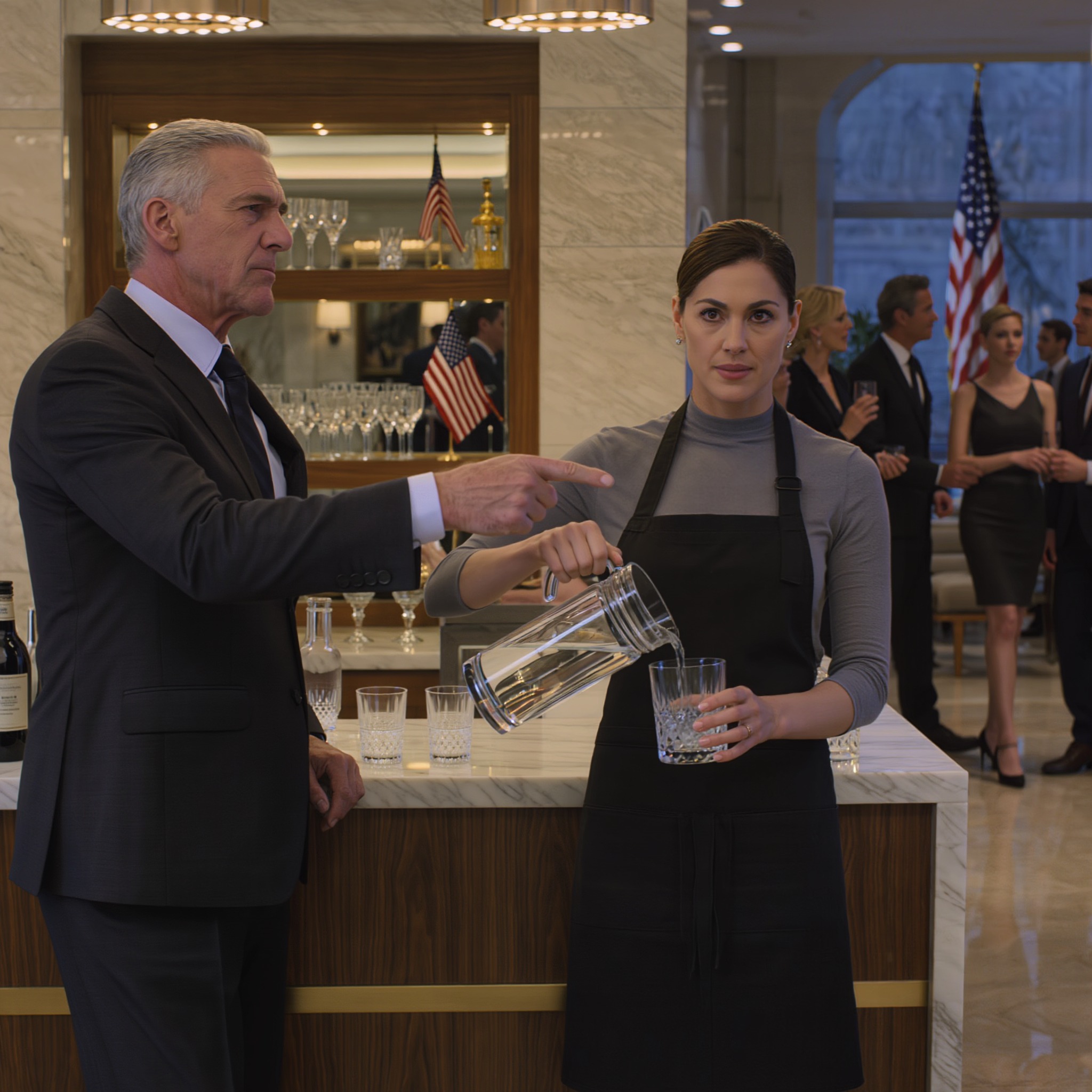 Ojciec właśnie nazwał mnie pielęgniarką-władczynią przed salą pełną ludzi, którzy wierzyli, że impreza za 2 miliony dolarów zapewni im trwałość. Wciąż stałam za barem, wciąż mając na sobie fartuch, który rzucił mi jak smycz, gdy kobieta przy kominku zachwiała się, jakby powietrze nagle zgęstniało. Jej kieliszek zsunął się z cichym brzękiem kryształu, a potem upadła na podłogę z dźwiękiem, który przeciął muzykę.