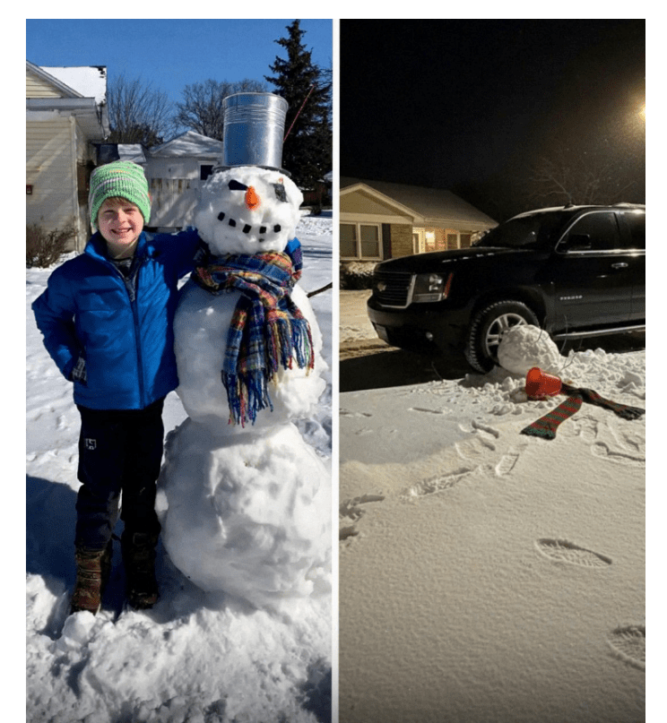 Wskazałem na róg naszego trawnika. „Mój syn lepi tam bałwany każdego dnia. Czy
