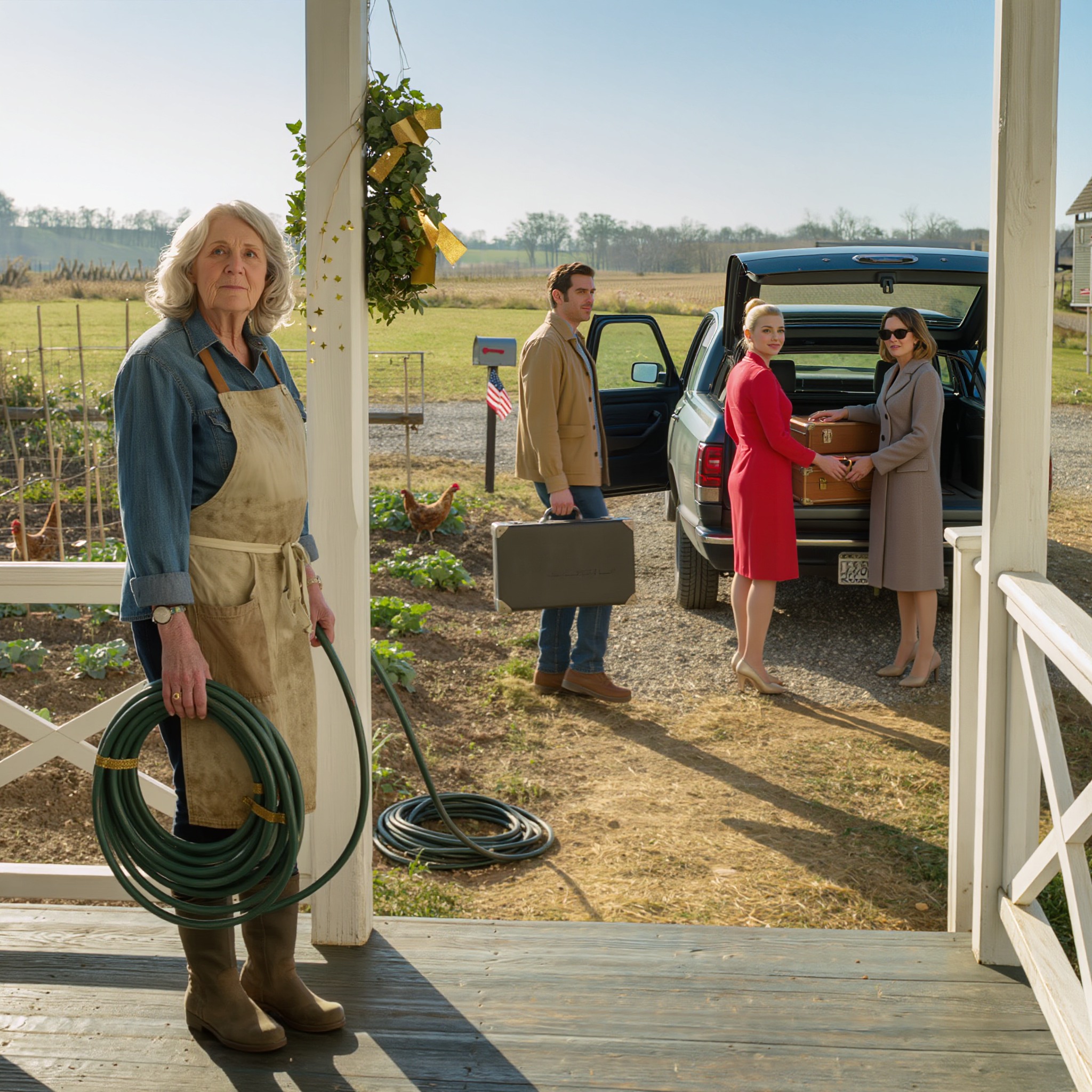 „Mamo, ty zostajesz na farmie. Ktoś musi zająć się ogrodem” – powiedział mi David dziś rano z tym sztucznym uśmiechem, który odziedziczył po żonie. Amber stała tam w swojej nowej czerwonej sukience i patrzyła na mnie, jakbym była po prostu kolejną pracownicą. A jej matka, Catherine, w tych drogich okularach przeciwsłonecznych, sprawdzała telefon, jakbym nie istniała.