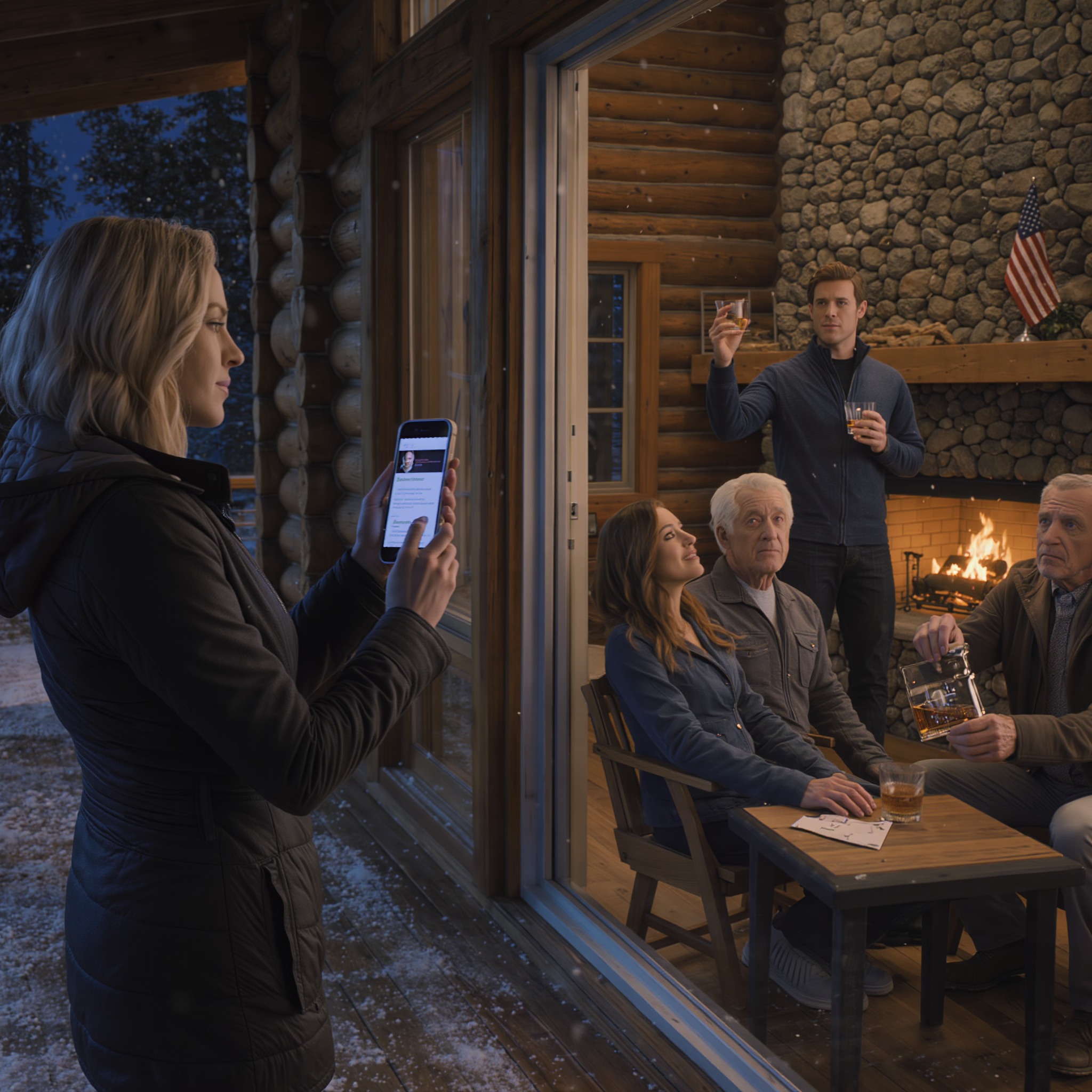 Dwie godziny później śnieg padał strugami – biała zasłona odgradzała chatę od reszty świata. Ale w środku paliły się światła. Tyler się nie chował. Podwajał stawkę. Przez okno widziałem, jak krąży po salonie, gestykulując dziko w stronę mojego ojca i nieznajomego w garniturze – prawdopodobnie prywatnego inwestora, którego próbował oszukać, żeby uzyskać pożyczkę pomostową na pokrycie długów, zanim dopadnie go prawo.