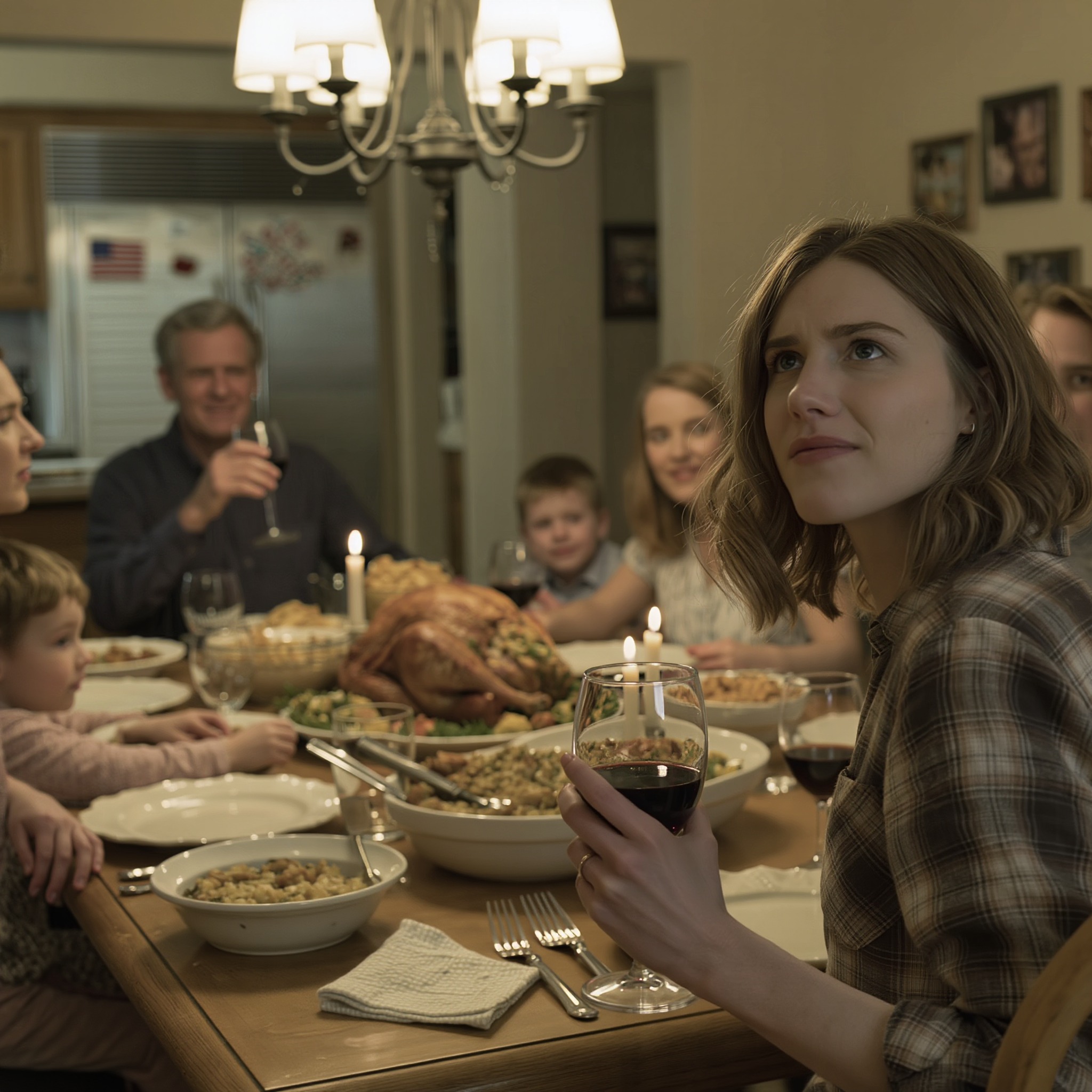 Widelce zamarły w powietrzu. Krzesło zaskrzypiało. Nawet dzieci ucichły. To była cisza, która nikogo nie chroni; po prostu wskazuje ci dokładnie, gdzie stoisz.