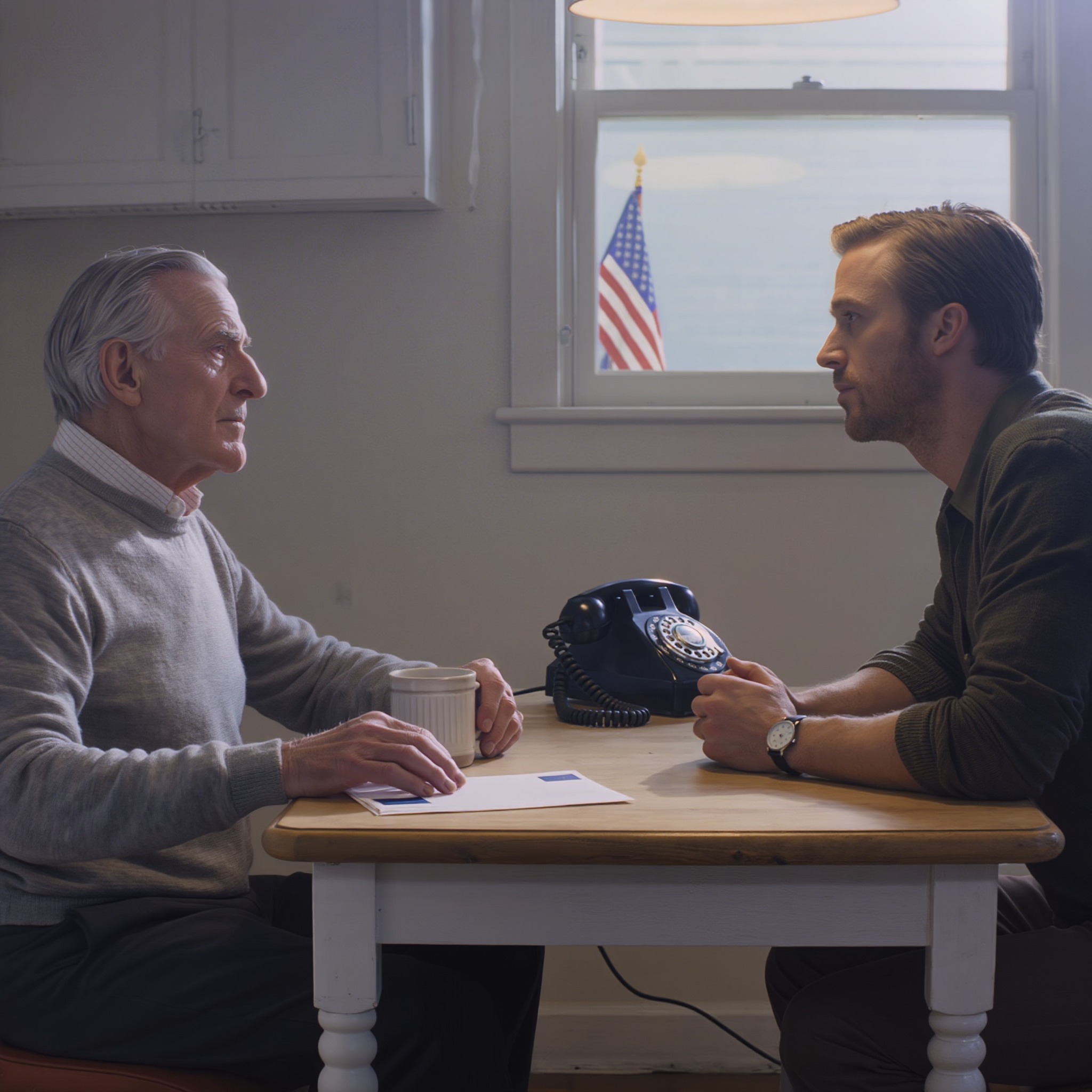 Zamiast tego spojrzałem na kuchenny stół, bo mój dziadek siedział tuż obok mnie, żywy, trzymając kubek kawy w dłoni, jakby nic na świecie nie mogło go ruszyć, dopóki on sam nie zechce się ruszyć.