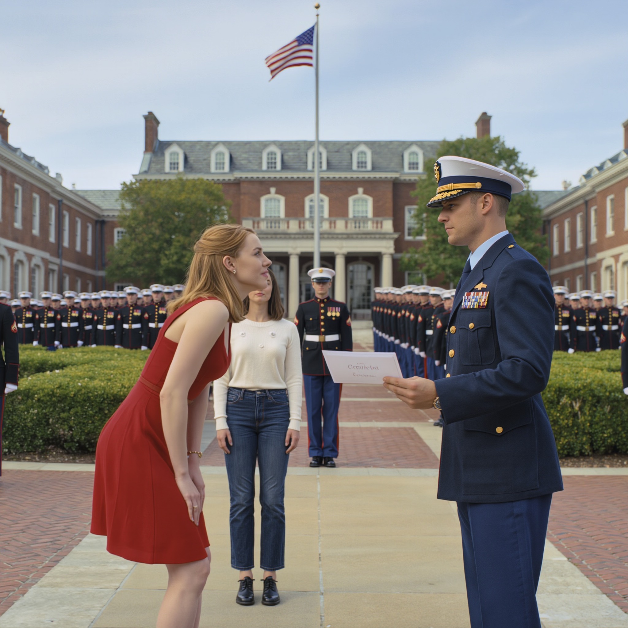 Wmaszerował szereg marines, wyprostowanych i wyprostowanych, z medalami odbijającymi światło słoneczne. Dziewczyny wokół mnie wręcz piszczały, jakby to był koncert, a nie formalna tradycja z randkami i presją.